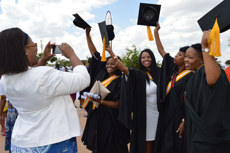 2: Proud mommy moments as Ms Mathabiso Makume take pictures of her niece and friends who received their Postgraduate Certificate in Education (PGCE) at the Welkom graduations.