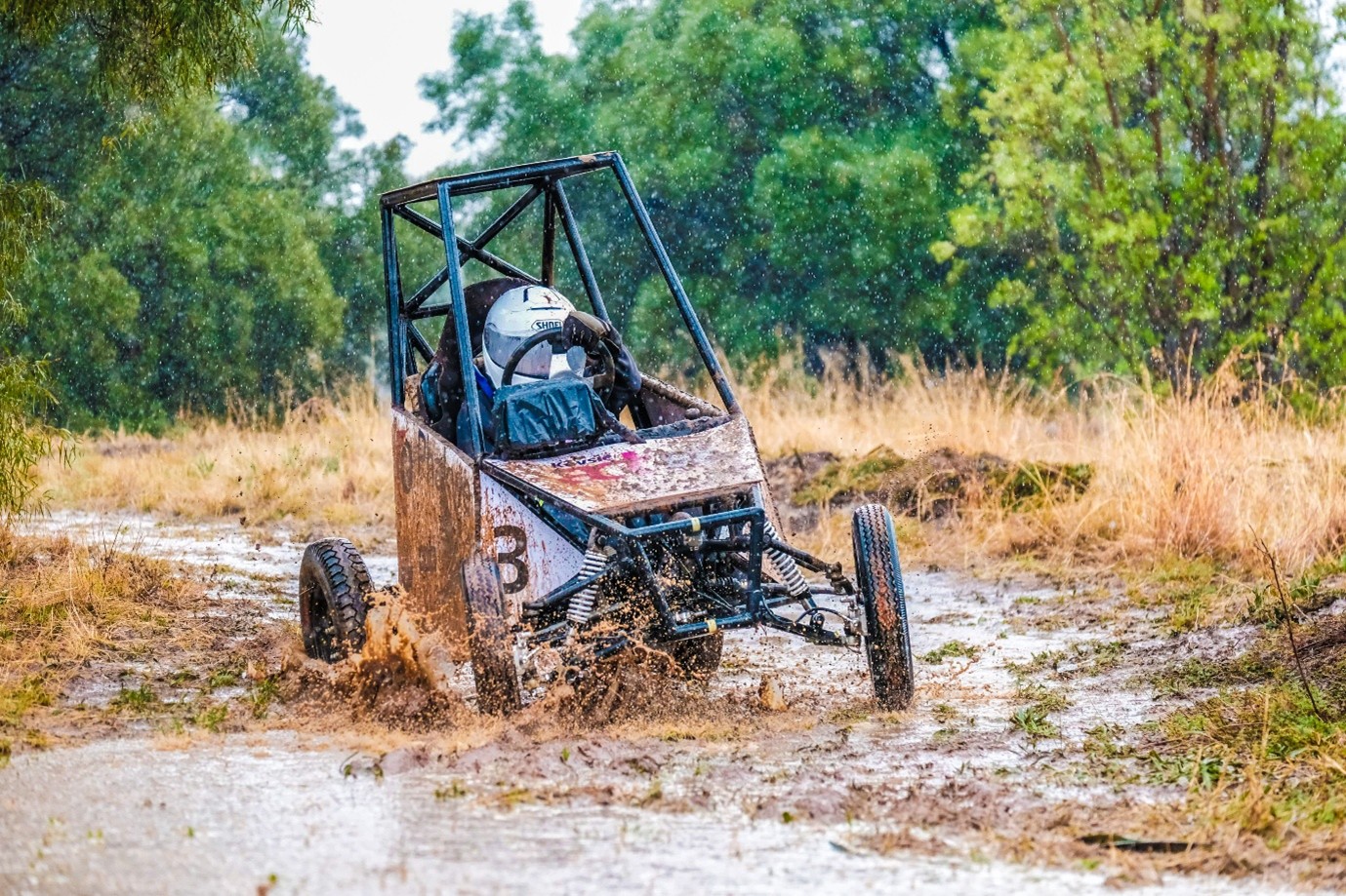 A rose among thorns: Masego More, a final-year Mechanical Engineering student and one of the CUT Eco-Vehicle 2.0 drivers manoeuvring the muddy terrain.