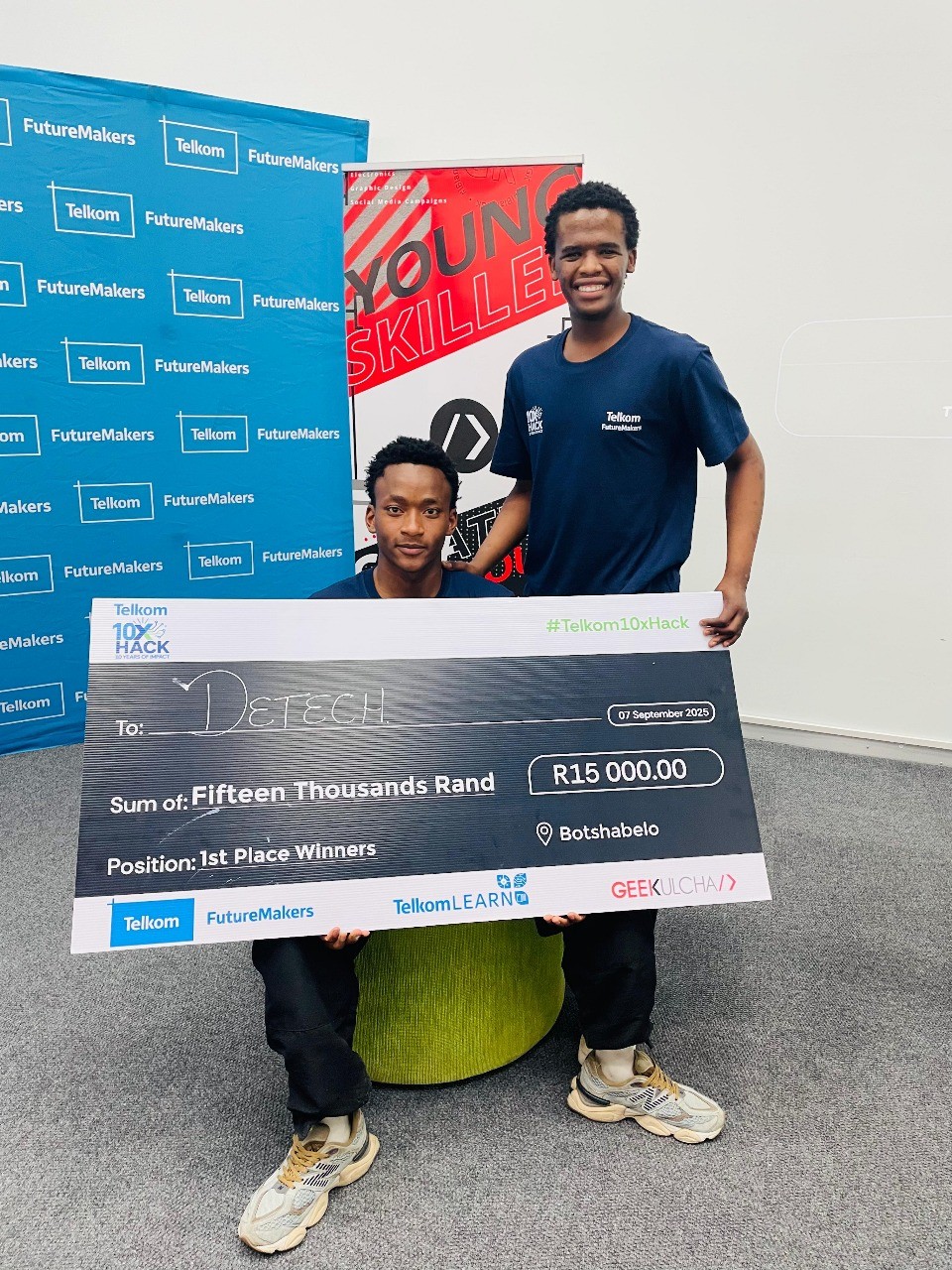 On 7 September 2025, Delight and Kabelo competed in the Free State leg of the Telkom 10X Hackathon at the Botshabelo Digital Hub, where they claimed first place with their innovative startup, DeTech. Their winning project, the Fire-Link Lite Solution, is a dual fire alert system that combines a mobile app with a standalone heat-sensing device, designed specifically to protect both connected and offline households in fire-prone township areas.