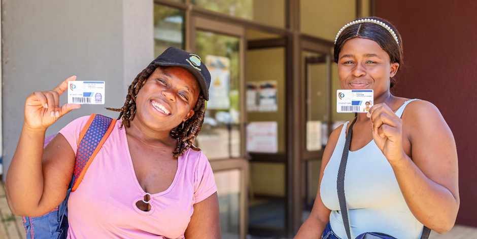 In Picture from Left: Fekile Mokoena and Minehle Nkosi, first-year Hospitality Management students showing off their newly acquired university identity.