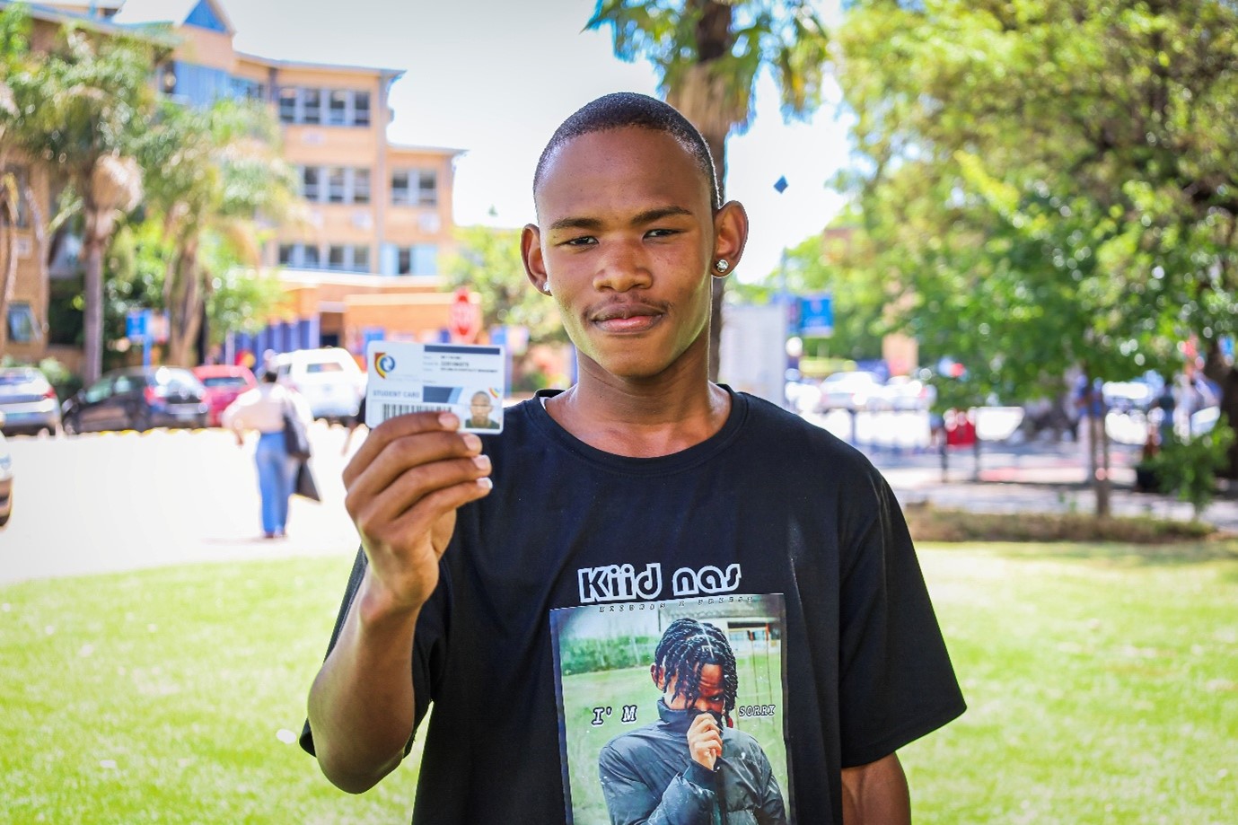 First-year Hospitality Management student Yamkelo Nkomo at the Bloemfontein campus after completing his registration.