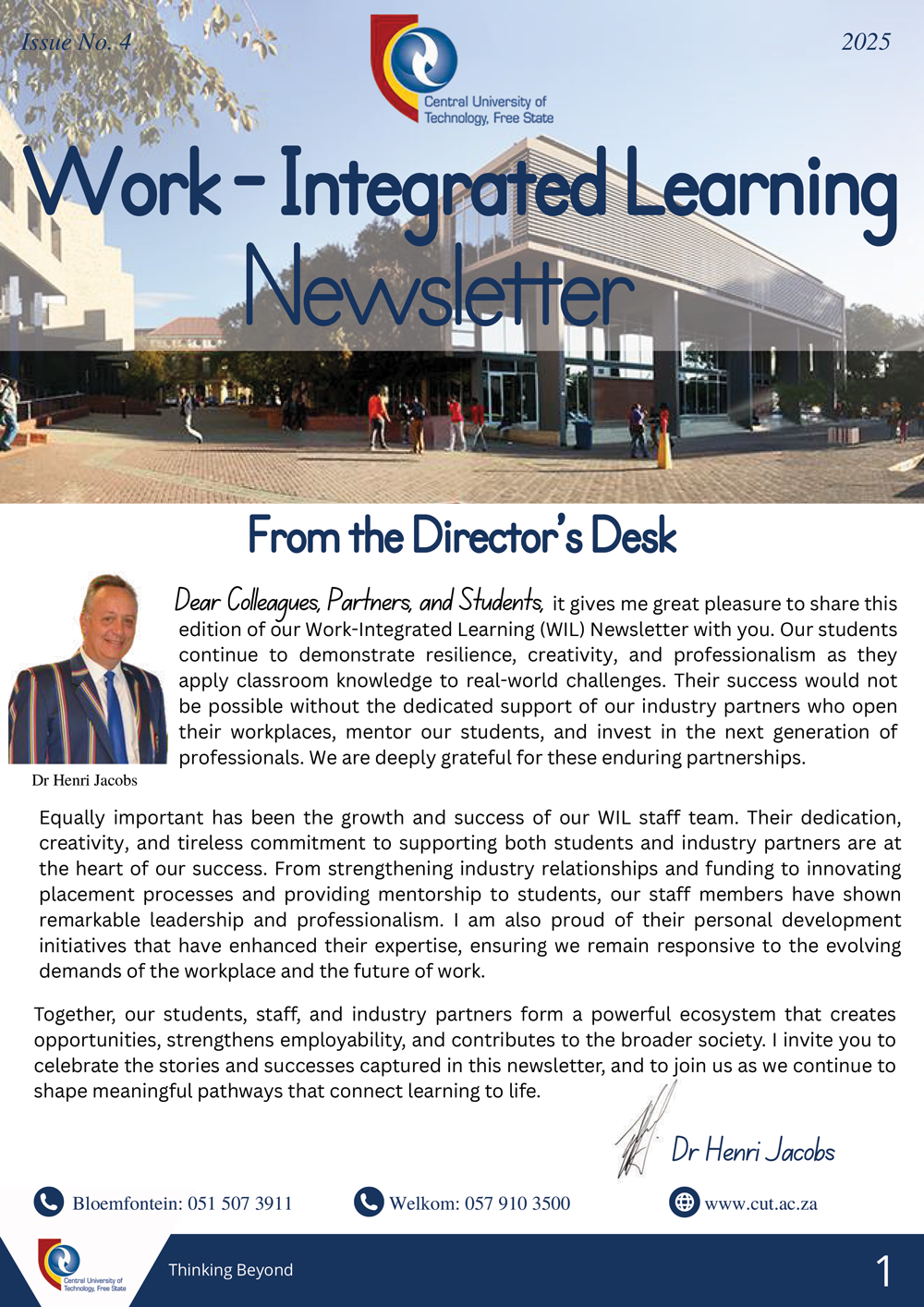 - Institutional oversight and the drafting and maintenance of policy and procedures regarding WIL at the CUT.